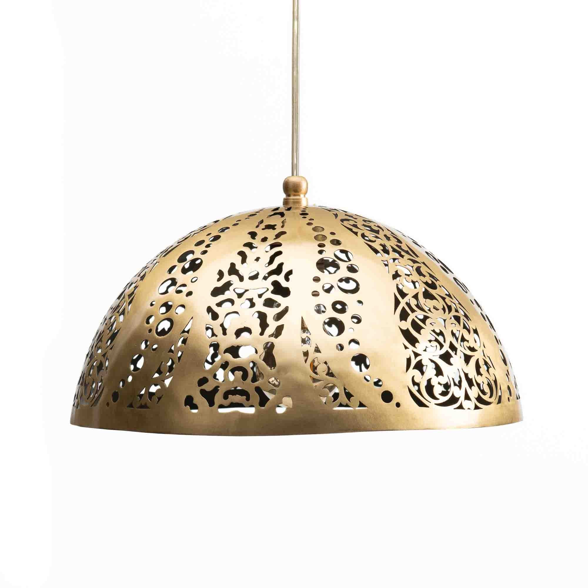 The Amaya pendant light showcases the finest Moroccan brass-piercing tradition with flowing arabesque motifs that transform ambient light into an enchanting display of pattern and shadow. Each fixture is painstakingly crafted by hand, making every piece a unique work of functional art that elevates any interior space.