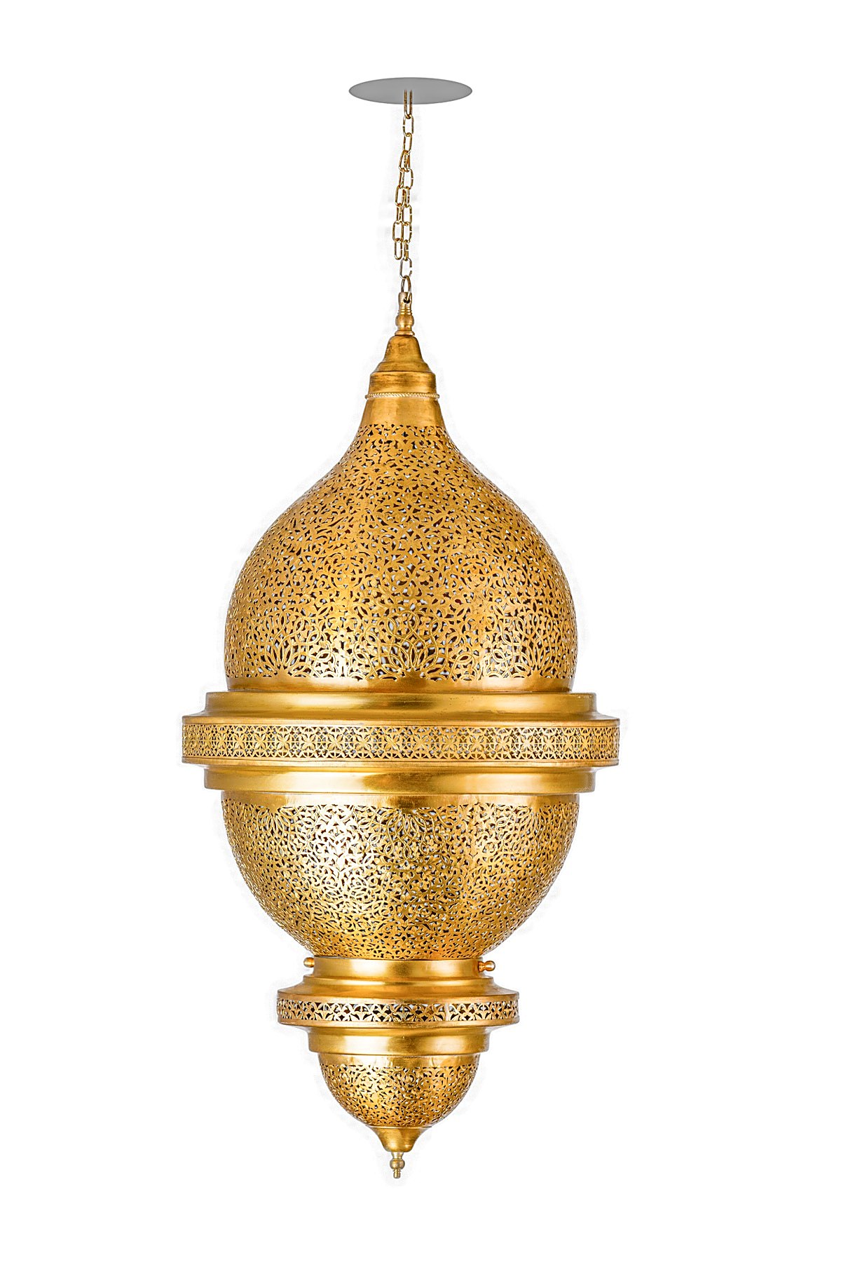 The Ombre Imperiale is our most dramatic lighting piece. This multi-tiered pendant creates layered shadow patterns that evolve throughout the day as natural and artificial light interact with its intricate pierced surfaces. Inspired by the grand chandeliers of Moroccan riads, it transforms ceilings and walls into living tapestries of light and shadow.