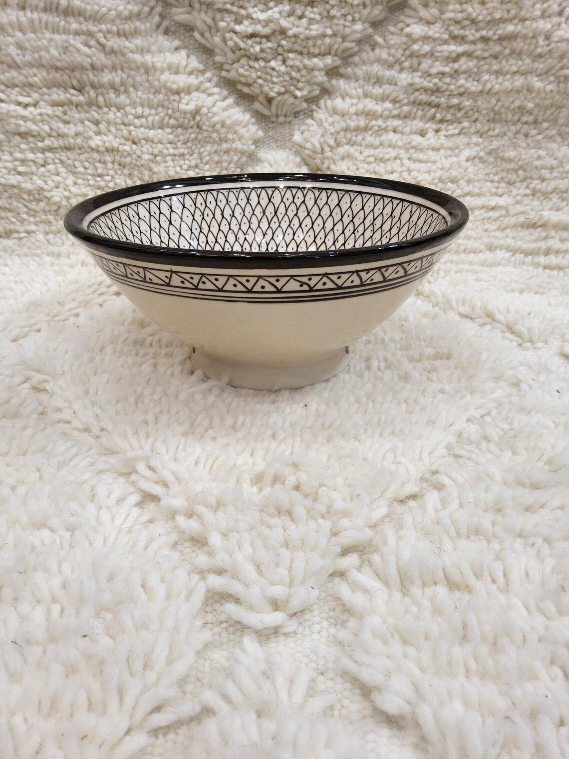 Inspired by the fishing nets that line the harbour of Safi, this bowl features a rhythmic crosshatch pattern that captures the maritime soul of this coastal pottery city. The organic, hand-drawn lines have a warmth and character that no machine could replicate. A beautiful vessel for olives, nuts, or as a decorative accent.
